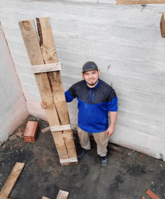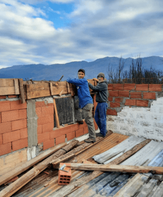 Sebastián tiene 28 años, vive con su pareja y dos hijos en las Golondrinas. Durante el incendio perdió todo. Le colaboramos haciendo el encofrado de la parte superior de las paredes para poder hacer el techo. Aún continuamos ayudándolo. Si te gustaría colaborar puntualmente con su familia lo podes contactar al +54 9 2944 833018
