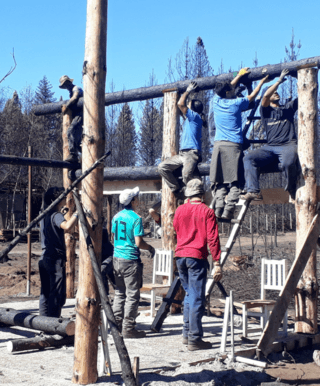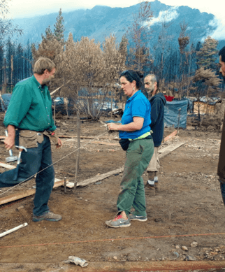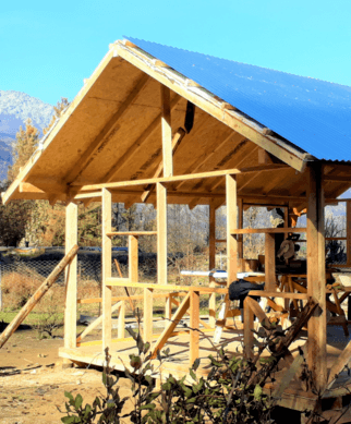 Gabriela es Artesana, madre soltera que perdio todo en el incedio. Cuando llegamos estaban puestos los parantes de su nueva casa. La ayudamos a finalizar la estructura, poner el techo y armar los bastidores para las paredes. El equipo de Bio construccion va a seguir levantando las paredes. Si queres colaborar puntualmente con Gabriela podes contactarla al +5492944213190