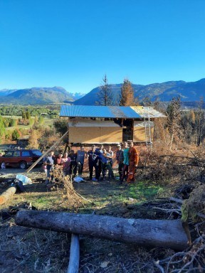 Alexis junto a su mujer y 2 hijas ( 2 y 8 años ) tenia una carpintería y vivienda que se quemaron por completo. En el memento en el que nosotros llegamos ya tenían armada la estructura y paredes, colaboramos a armarle el techo. Si queres ayudar puntualmente a Alexis podes contactarlo directamente al +542944634296