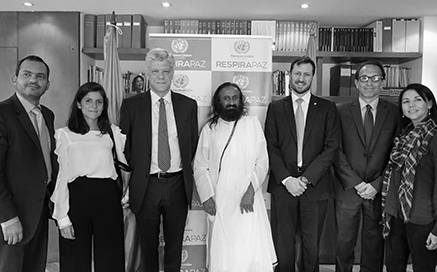 Sri Sri Ravi Shankar se reúne con directivos de Naciones Unidas y con víctimas del conflicto en el Centro Nacional de Memoria Histórica.